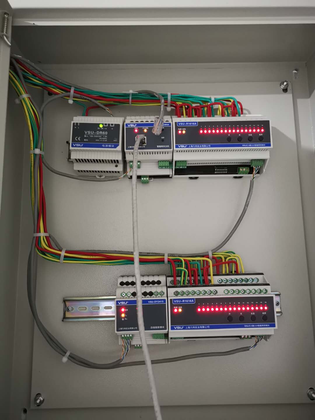 采用VSU總線型成套產(chǎn)品:智能網(wǎng)關(guān)主機(jī)控制整體,接受到手機(jī)或面板的指令輸送到開(kāi)關(guān)執(zhí)行模塊進(jìn)行遠(yuǎn)程開(kāi)關(guān)燈操作,采用的照明模塊是16路16A的,搭配DR60電源模塊、級(jí)聯(lián)模塊確保供電充沛??偩€的特點(diǎn)是連產(chǎn)品的調(diào)試檢測(cè)都不需要到現(xiàn)場(chǎng),遠(yuǎn)程即可將其調(diào)試就位。這個(gè)項(xiàng)目甚至連我司技術(shù)人員遠(yuǎn)程協(xié)助都不需要自己就安裝完成,可見(jiàn)其有多便于安裝,加上連接片用于串聯(lián)模塊,不是專業(yè)人員也可自主安裝使用。