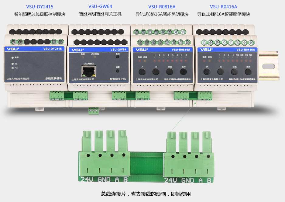 VSU-NET總線產(chǎn)品,大都采用雙總線口的設(shè)計(jì),搭配連接片使用,極大降低施工人員接線的工作量,產(chǎn)品設(shè)計(jì)合理專業(yè)、系統(tǒng)、更加人性化;系統(tǒng)配置免編程,手機(jī)即可完成簡單的系統(tǒng)編程,不需要電腦,人機(jī)互動(dòng),真正實(shí)現(xiàn)智能化控制。