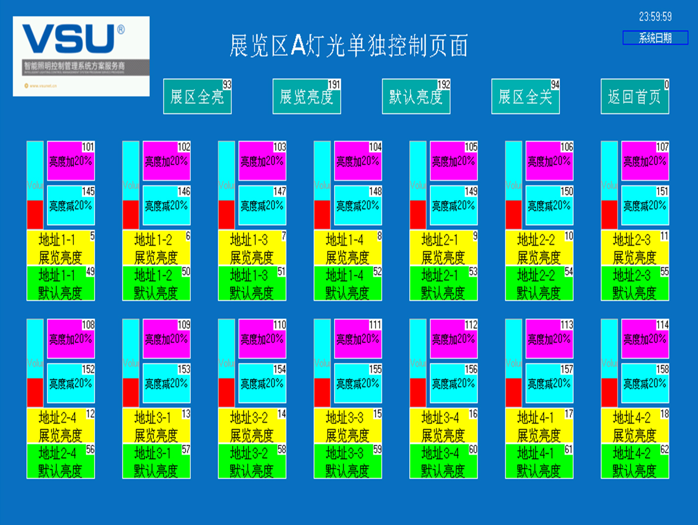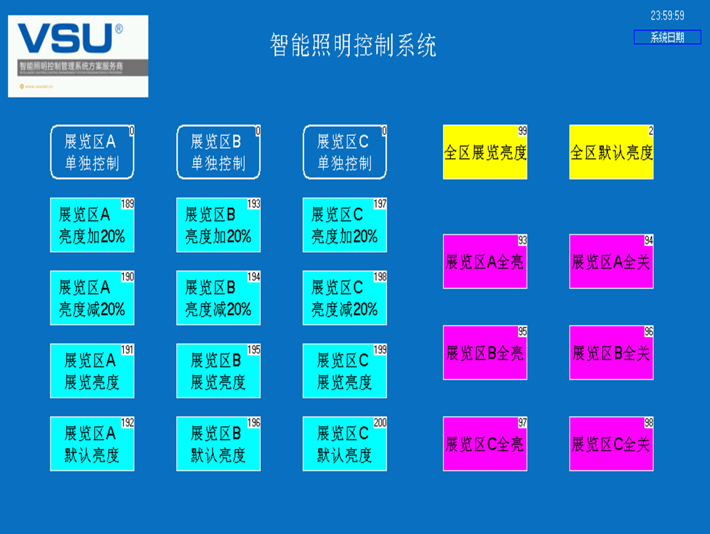 下圖為蓬萊閣智能照明項目控制界面: