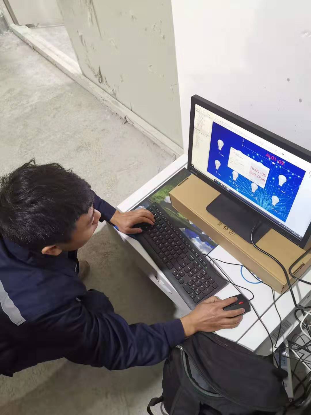 VSU智能照明控制系統(tǒng)可實(shí)現(xiàn)對區(qū)域內(nèi)所有燈具開閉,調(diào)光調(diào)色,定時控制,空調(diào)高中低三檔、電動門、電動窗簾開閉,可帶人感、光感,實(shí)現(xiàn)全自動化??刂品绞娇蛇x擇手機(jī)、電腦、觸摸屏、面板。根據(jù)客戶需求,VSU為安康江南再生水廠該項(xiàng)目設(shè)計(jì)的控制方式為電腦+觸摸屏。下圖為現(xiàn)場測試情況: