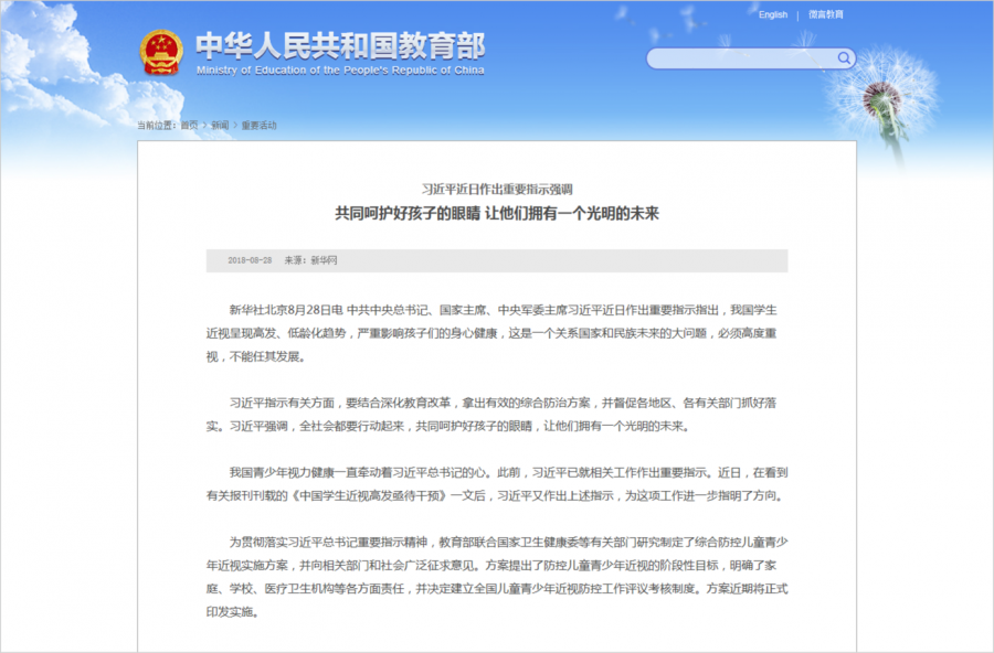 針對(duì)近年來我國兒童青少年近視率居高不下、不斷攀升,近視低齡化、重度化日益嚴(yán)重等問題,習(xí)近平總書記曾指出:我國學(xué)生近視呈現(xiàn)高發(fā)、低齡化趨勢(shì),嚴(yán)重影響孩子們的身心健康,這是一個(gè)關(guān)系國家和民族未來的大問題,必須高度重視,不能任其發(fā)展。有關(guān)方面要結(jié)合深化教育改革,拿出有效的綜合防治方案,督促各地區(qū)、各有關(guān)部門抓好落實(shí),同時(shí)強(qiáng)調(diào)全社會(huì)都要行動(dòng)起來。