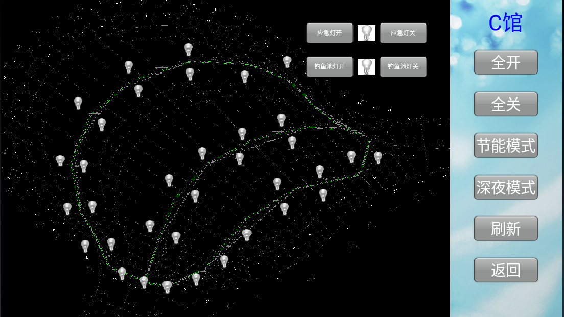 智能照明控制系統(tǒng)對各個場館內(nèi)的照明納入到統(tǒng)一的系統(tǒng)平臺進行集中管理,實現(xiàn)一鍵全開全關(guān),游樂園可根據(jù)不同節(jié)日預(yù)設(shè)不同燈光場景,增添假日氣氛,也可根據(jù)客流量預(yù)設(shè)燈光(如下圖:節(jié)能模式),在保持照明需求以及氛圍感的同時,實現(xiàn)節(jié)能減排。