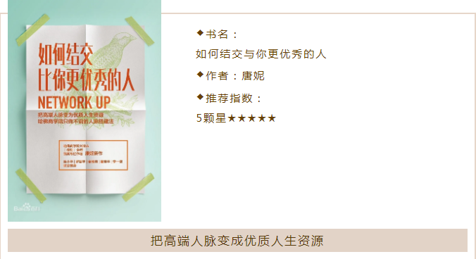 每個人都希望自己的學(xué)習(xí)、生活圈中能接觸到那些比自己更優(yōu)秀的人,讓自己變得更優(yōu)秀。而實際上并非如人所愿,每天在期望著卻并未去行動,最終只會讓自己離優(yōu)秀越來越遠(yuǎn)。并且悔恨時間過的太快,卻從未好好反思如何利用好當(dāng)下自己的亮點,及時抓住機(jī)會時刻關(guān)注可以與優(yōu)秀的人結(jié)交機(jī)會,亦或者不斷提升自己的各方面能力,讓自己變的更優(yōu)秀.我們在日常的人脈搭建中,時常會進(jìn)入“不敢”“不愿”“不會”的三大誤區(qū),是什么情況又該如何解決呢?不敢,是因為我們不夠自信,特別是向上結(jié)交。常常認(rèn)為別人比我們優(yōu)秀的多,我們不敢開口,錯失機(jī)會。那就是要解決我們不自信的問題,如何讓自己變得自信,這是一個大話題??舍槍ξ覀儾蛔孕诺姆矫妫谡Z表達(dá)、邏輯分析等)找出自身的原因,并找到解決的方法。另外這本書,我比較深刻的地方是,一個人不管是事業(yè)的成功還是生活的歡樂,80%歸因于和別人相處,20%才是來自自己的心靈。我也像作者康妮提到那樣一類人一樣,在手機(jī)通訊錄里躺著很多聯(lián)系人名字和號碼,有好多我真的想不出都是誰,長什么樣子,包括朋友圈一樣,這些聯(lián)系人都是我們?nèi)粘?梢跃S護(hù)或者找到學(xué)習(xí)亮點的人。通過這本書的學(xué)習(xí),讓我認(rèn)識到,一定要學(xué)會管理自己的聯(lián)系人,使他們成為自己的深度好友,還要學(xué)會連接優(yōu)秀的人,不過,了解結(jié)交更優(yōu)秀的人的方法和技巧,只是改變的第一步。要想成為人脈達(dá)人,還要在實際生活中刻意練習(xí),及時總結(jié)經(jīng)驗教訓(xùn)。