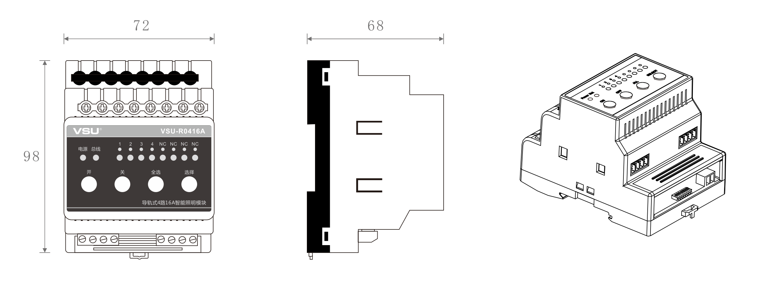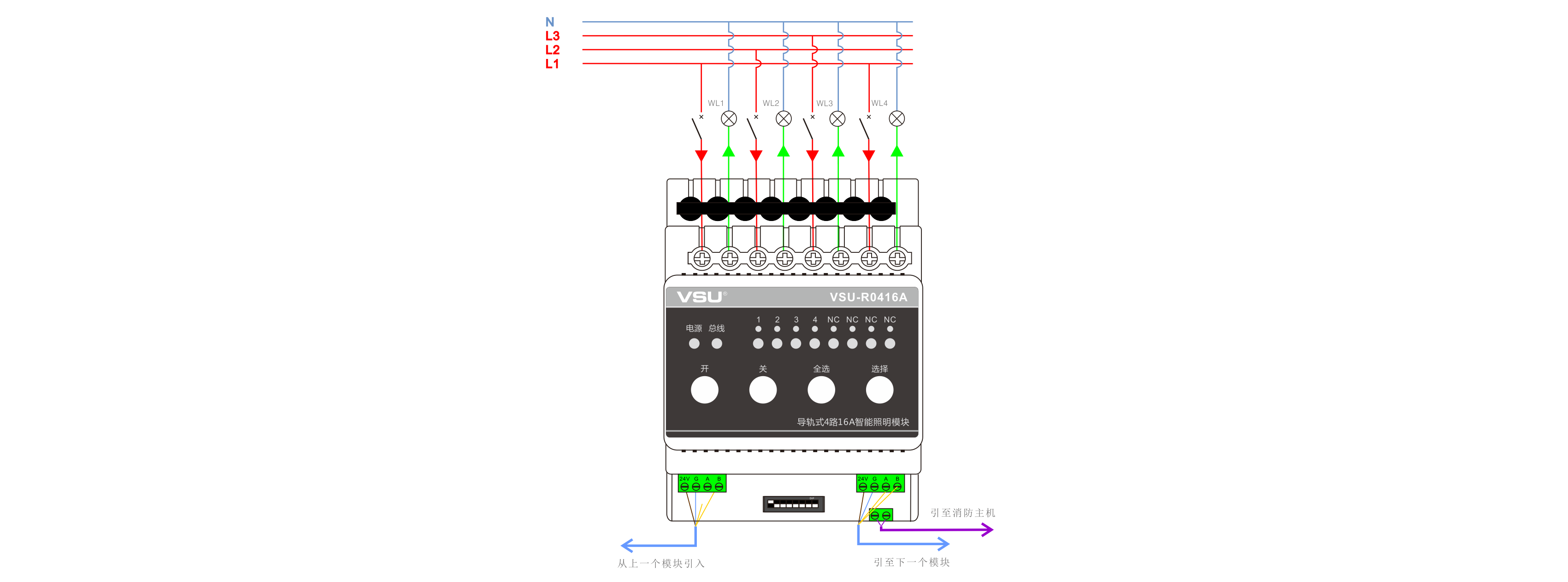 本產(chǎn)品為導軌式安裝,含4路智能繼電器,每回路可獨立控制3520W燈具的開關,帶應急按鍵,LED燈時時指示各個回路開關狀態(tài)