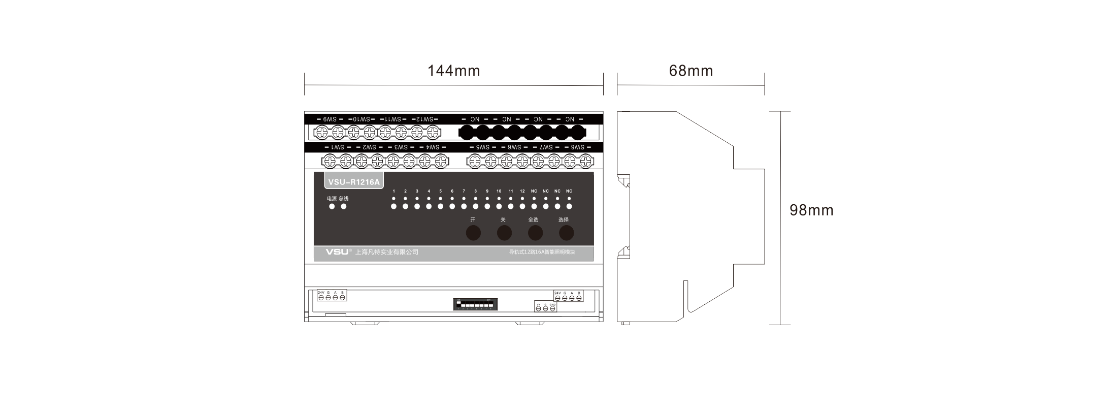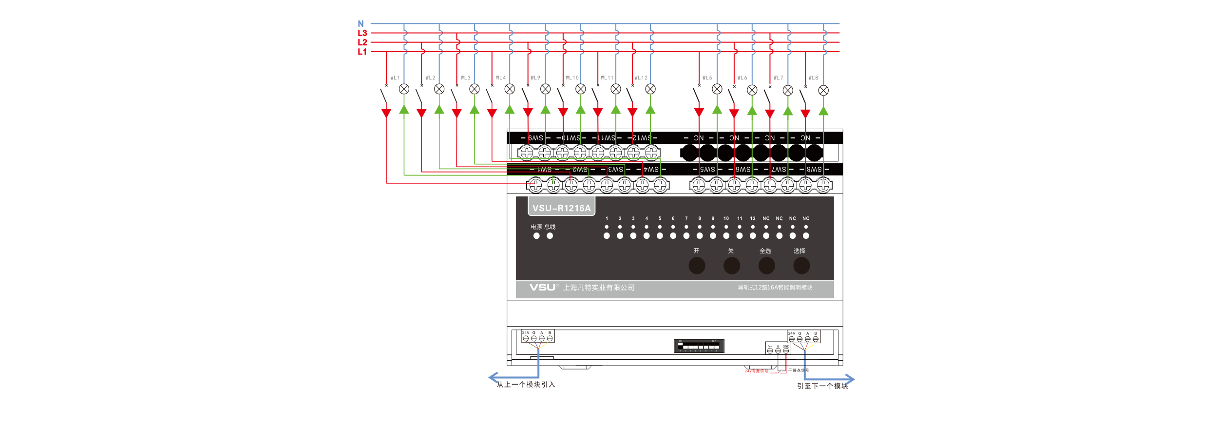 本產(chǎn)品為導(dǎo)軌式安裝,含12路智能繼電器,每回路可獨立控制3520W燈具的開關(guān),帶應(yīng)急按鍵,LED燈實時指示各個回路開關(guān)狀態(tài),可設(shè)置為互鎖控制6組窗簾開合; |