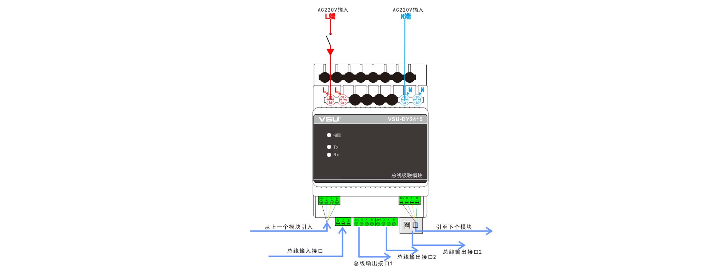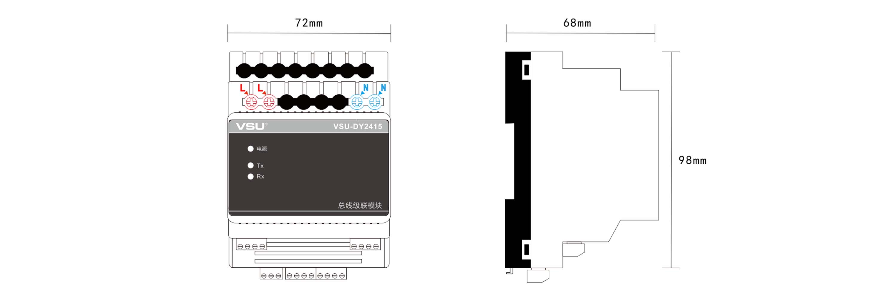 3,導軌式安裝,占4個模數位,符合VSU-Net總線標準;