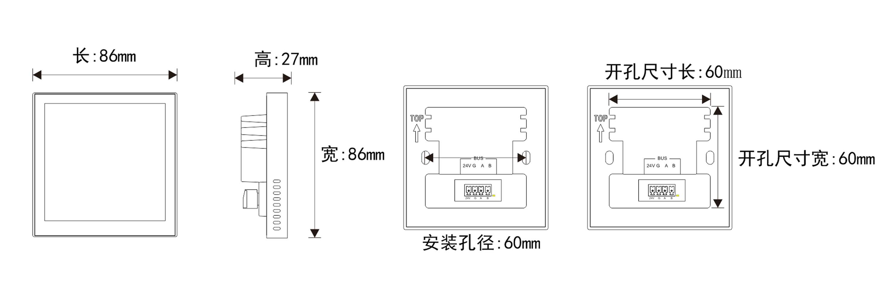 標準86盒安裝,4寸真彩屏,單控開關、窗簾和場景總線控制,可自定義界面支持3D文字、3D圖片,個性化界面;用于集中控制,支持雙向通信,安裝方便,接口靈活,適用于各種多媒體中央控制系統(tǒng)。