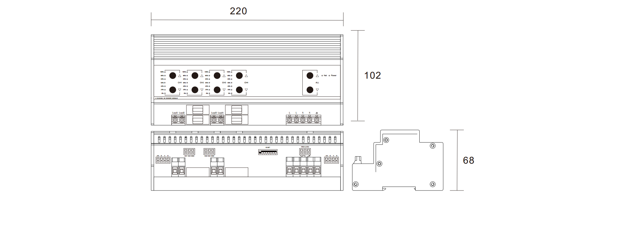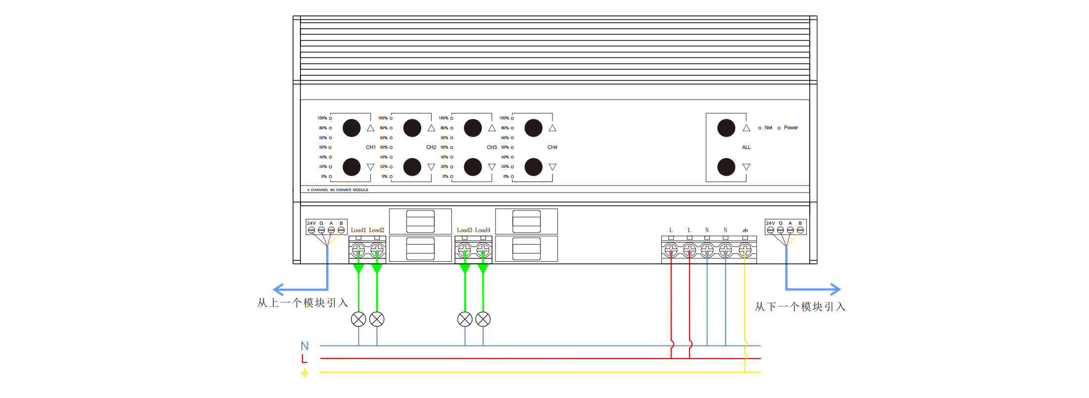 2,輸出回路:4路可控硅前沿調(diào)光;