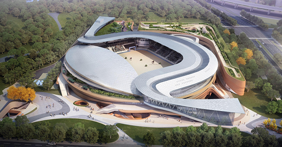 項(xiàng)目概述: 上海久事國(guó)際馬術(shù)中心,位于黃浦江畔世博文化公園南部,是世博文化公園南區(qū)重要和特殊的組成部分,國(guó)內(nèi)首座符合國(guó)際頂級(jí)馬術(shù)賽事標(biāo)準(zhǔn)的專(zhuān)業(yè)性比賽場(chǎng)館。場(chǎng)館總建筑面積8.2萬(wàn)平方米,主體建筑高度15米。該項(xiàng)目選址浦東新區(qū)世博文化公園C04-01a地塊,南臨通耀路,西臨濟(jì)明路,總用地面積3.32公頃,主體建筑包含1個(gè)90X60米的競(jìng)賽場(chǎng)地、熱身場(chǎng)、訓(xùn)練場(chǎng)和高規(guī)格馬廄,以及約5000座觀眾與貴賓看臺(tái)等設(shè)施。
