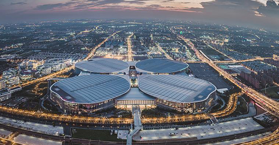項(xiàng)目概述: 國(guó)家會(huì)展中心形狀如四葉草,4個(gè)展館猶如四個(gè)葉片匯聚于中央廣場(chǎng),13個(gè)展廳單個(gè)面積近3萬(wàn)平方米,相當(dāng)于4個(gè)標(biāo)準(zhǔn)足球場(chǎng)。其中3個(gè)單層“無(wú)柱展廳”凈高達(dá)34米,穹頂跨度達(dá)108米,堪稱(chēng)會(huì)展“巨無(wú)霸”。而位于中央的商業(yè)廣場(chǎng)則相當(dāng)于“四葉草之蕊”,匯集美食、電影院、劇場(chǎng)、公共服務(wù)等多種功能。綻放的“四葉草”已經(jīng)成為了上海的新地標(biāo)。